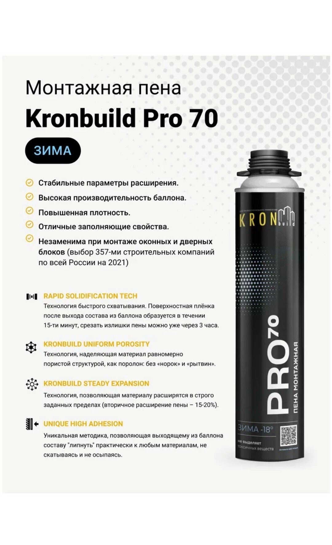 Условия доставки Монтажная пена зимняя KRONbuild Pro 70 950мл: