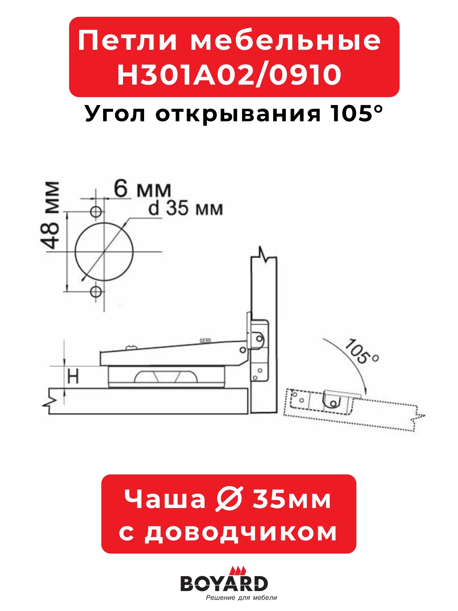 Способы оплаты Петля BOYARD накладная с доводчиком для шкафов металл 4 шарнира: