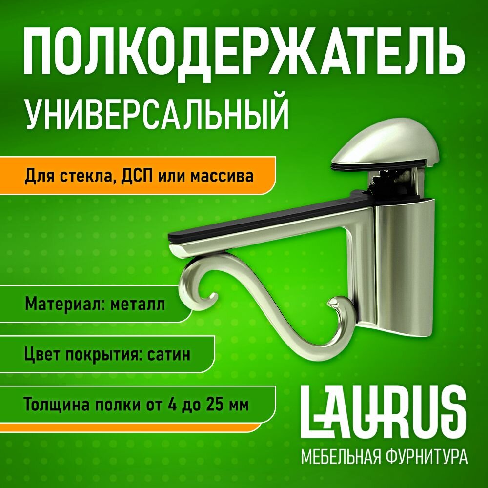 Способы оплаты Полкодержатель мебельный атласный сатиновый никель подходит для стеклянных полок Кронштейн для полки из ДСП ДВП дерева стекла и других материалов: