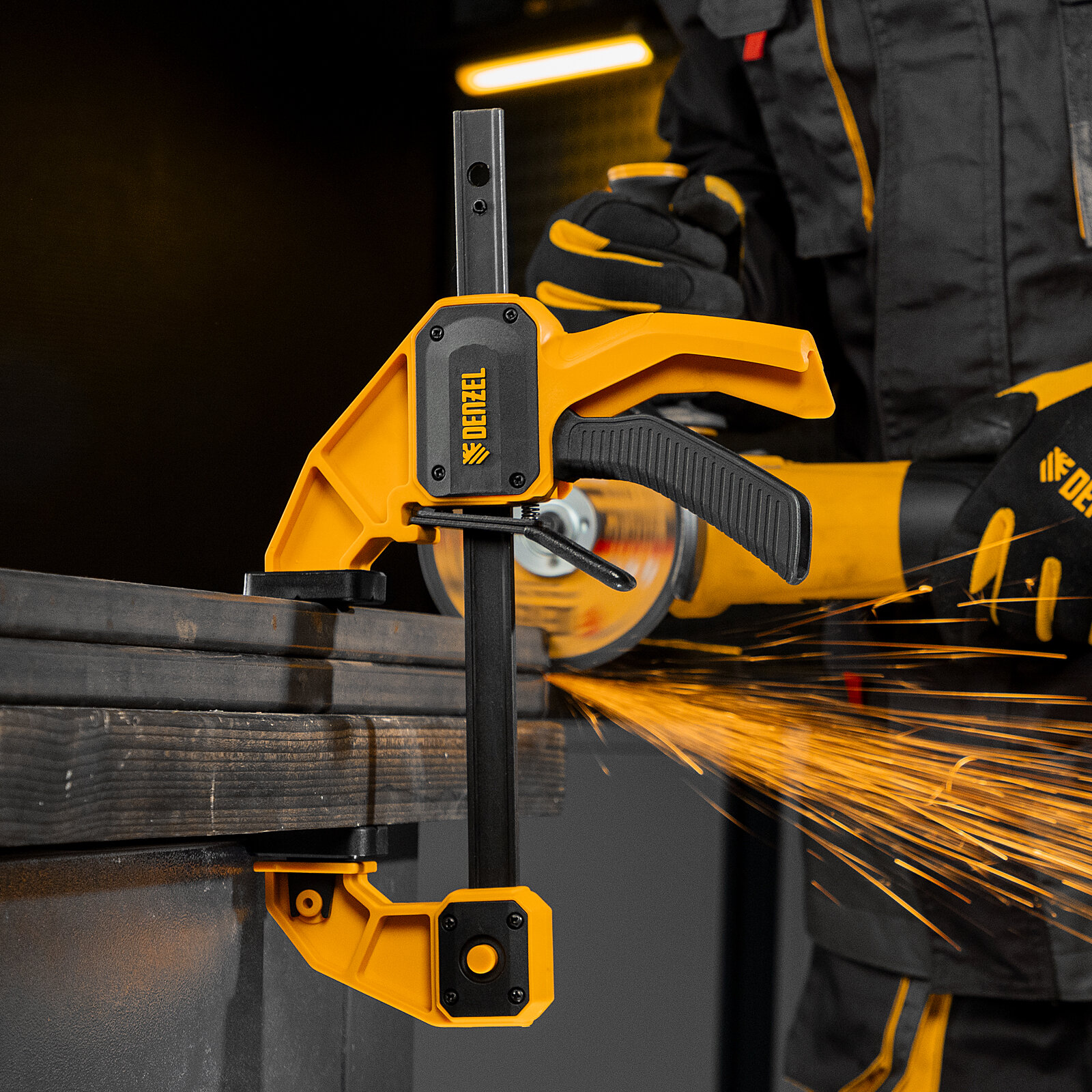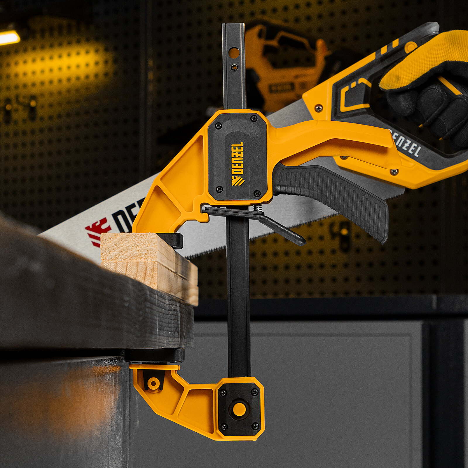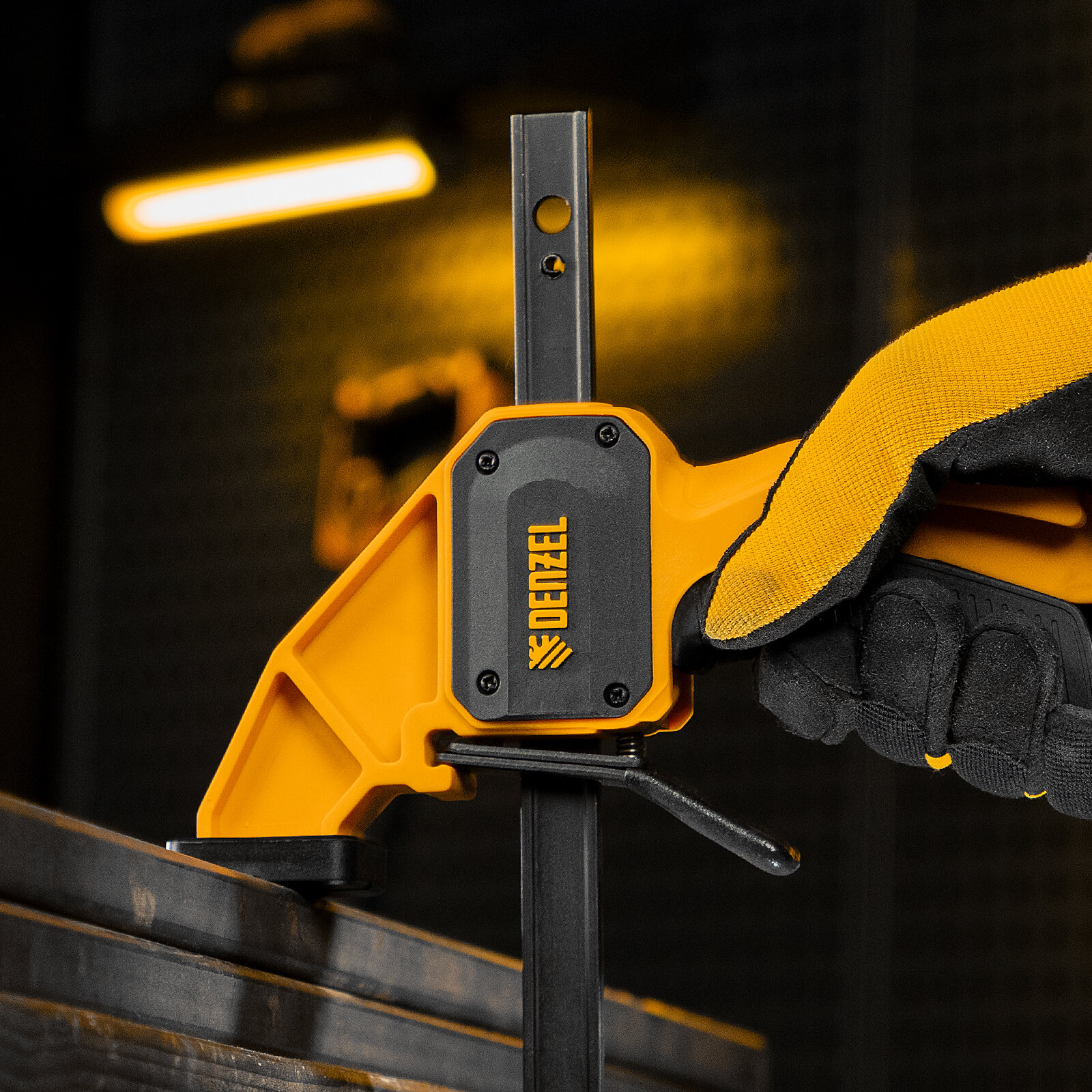 Способы оплаты Струбцина Fобразная быстрозажимная Denzel 150 х 80 мм усиленный нейлоновый корпус 20505: